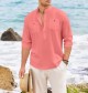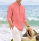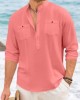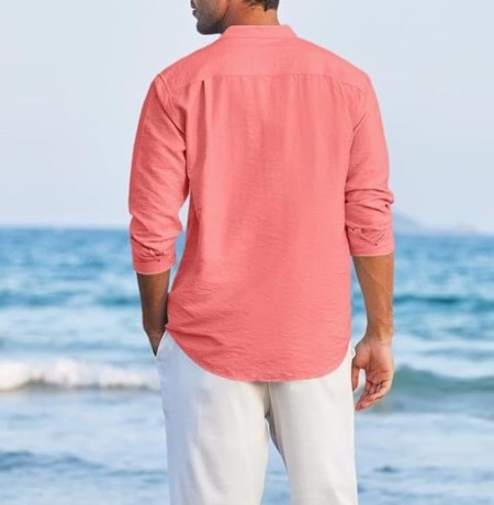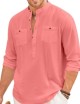 【STYLISH DESIGN】Men's Short Kurta, with band collar, two rows of pleats down each side of the front chest, two pockets, real buttons, solid color, long sleeve(can roll-up), 5-button placket closure and arc hem.