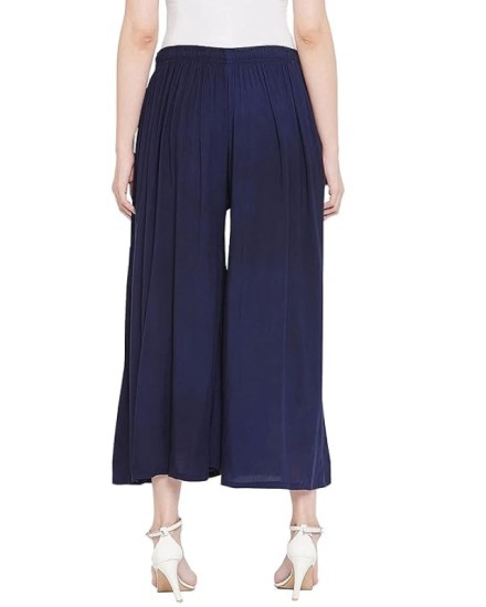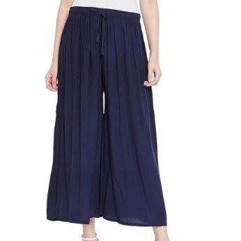 Straight plazo pants, commonly referred to as palazzo pants, are a stylish and comfortable choice for women, characterized by their wide-leg design that flows from the waist. Here’s a detailed description of these versatile trousers: